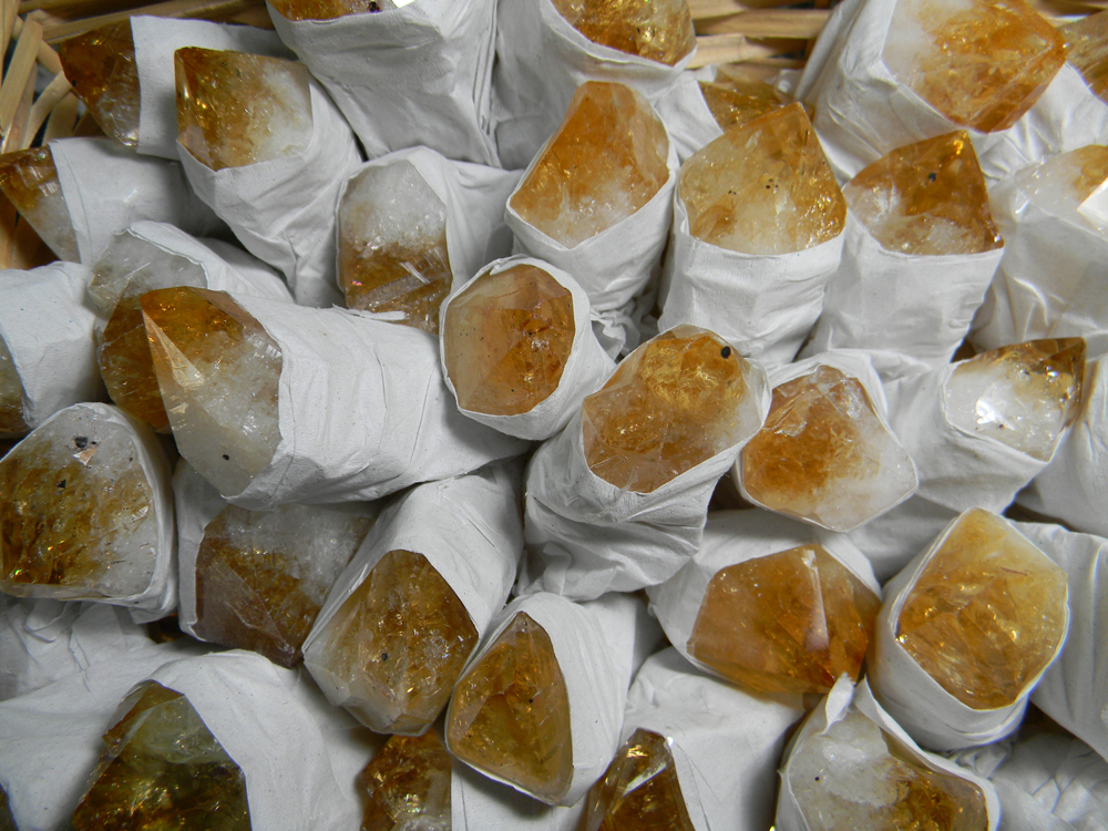 Citrine has been on our list for a while and we were happy to obtain some lovely large points with rainbows, as well as some smaller crystals: